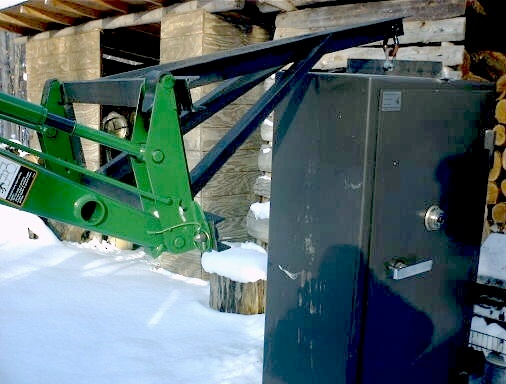 The boom quick detaches just like the other John Deere stuff, just pull two pins, tilt, and back out of it.